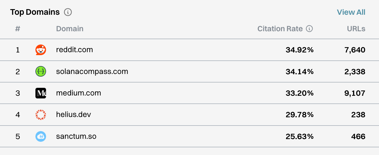 They are now the 5th most cited domain in the entire Solana liquid staking space, appearing in 25.6% of all AI answers across major LLMs.
